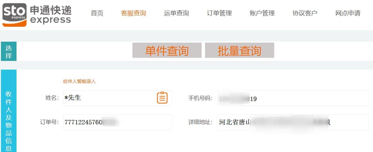 快递收货地址等信息查询